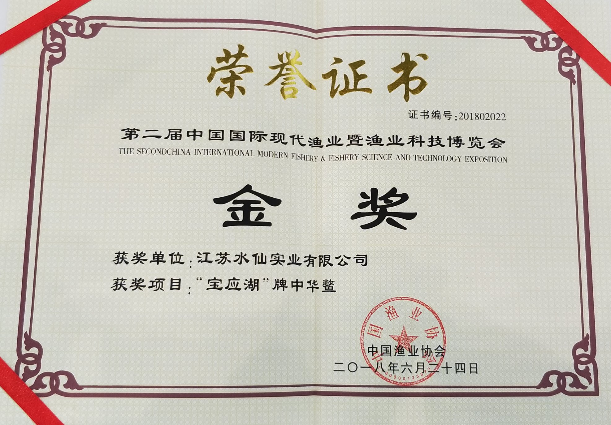 第二屆漁業(yè)博覽會中華鱉金獎